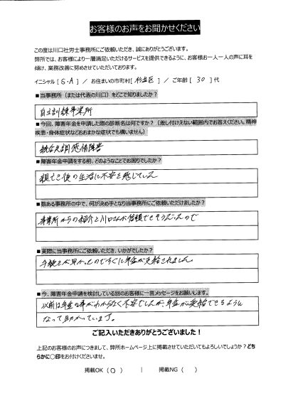 今、障害年金申請を検討している別のお客様に一言メッセージをお願いします。
