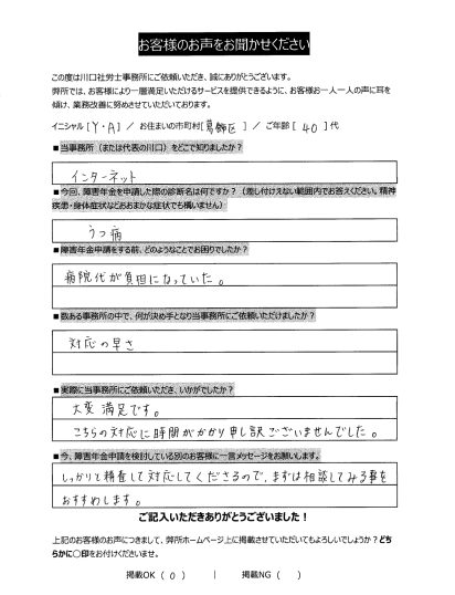 今、障害年金申請を検討している別のお客様に一言メッセージをお願いします。