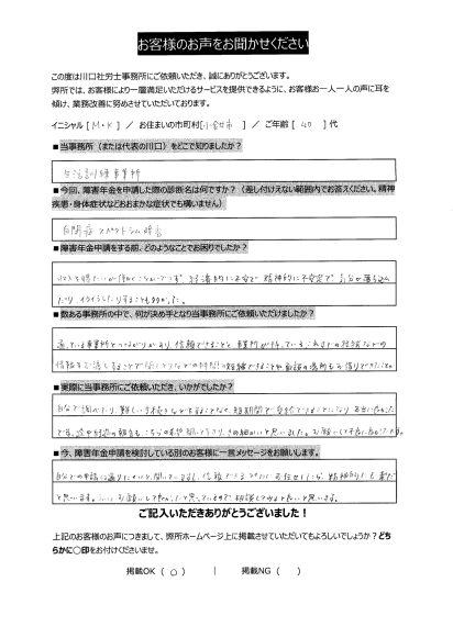 今、障害年金申請を検討している別のお客様に一言メッセージをお願いします
