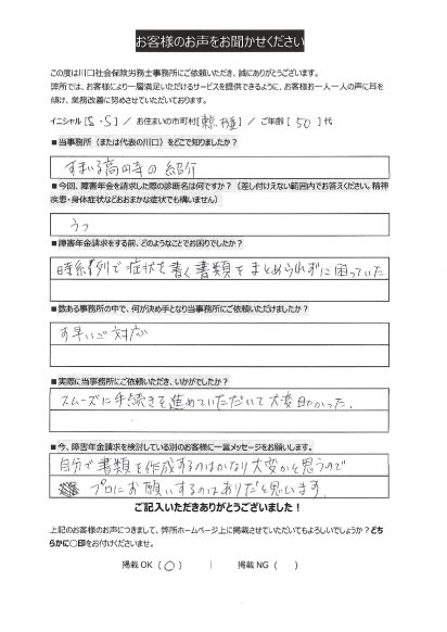 今、障害年金申請を検討している別のお客様に一言メッセージをお願いします