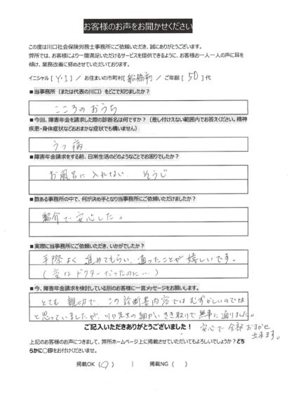 今、障害年金申請を検討している別のお客様に一言メッセージをお願いします