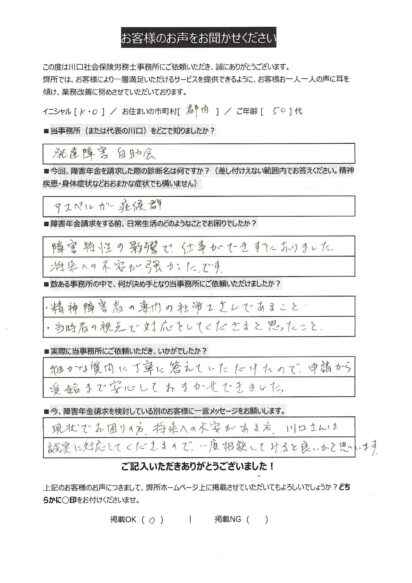 今、障害年金申請を検討している別のお客様に一言メッセージをお願いします