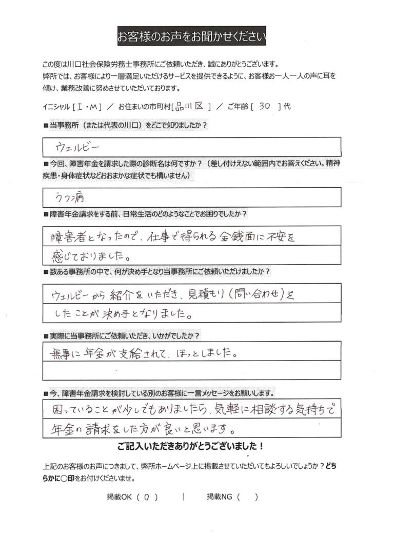 うつ病で仕事をお辞めになり、就労移行支援事業所に通所されていたI・M様。
