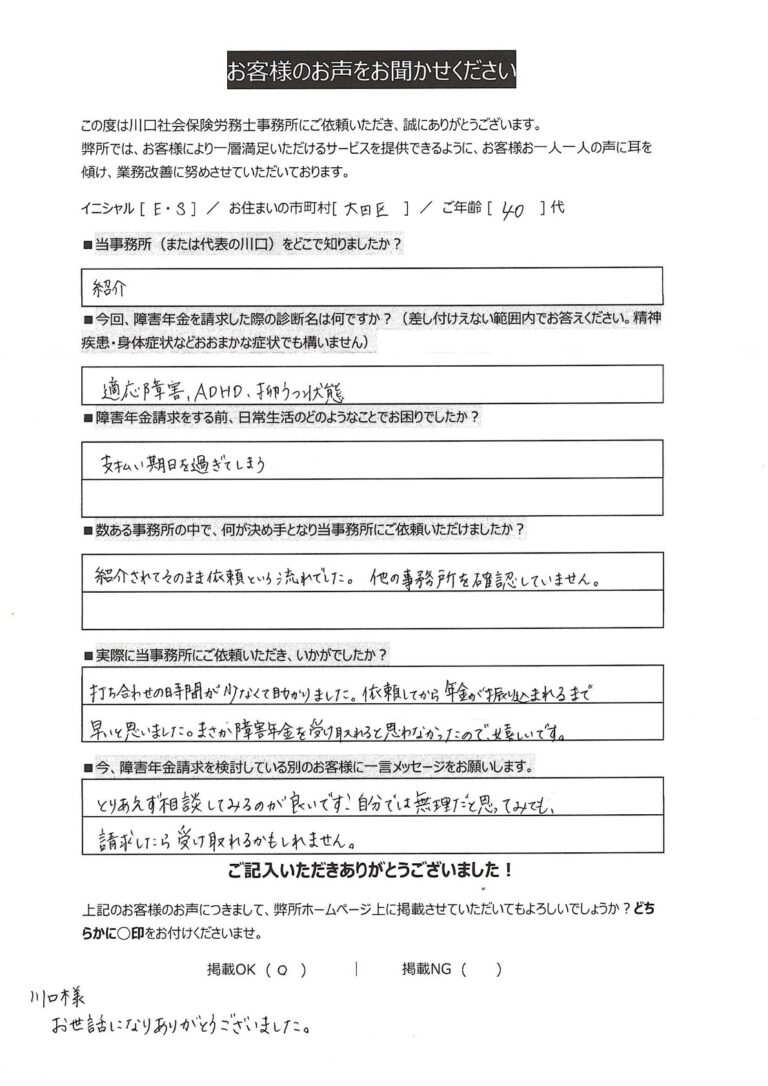 今、障害年金申請を検討している別のお客様に一言メッセージをお願いします