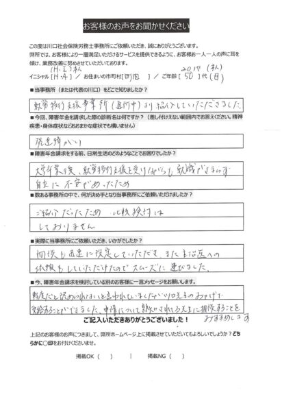今、障害年金申請を検討している別のお客様に一言メッセージをお願いします