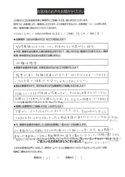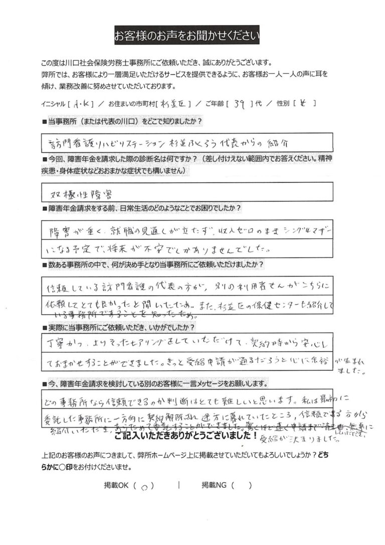 今、障害年金申請を検討している別のお客様に一言メッセージをお願いします