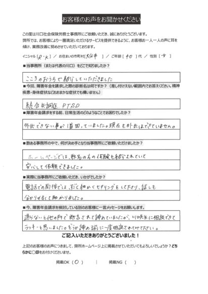 今、障害年金申請を検討している別のお客様に一言メッセージをお願いします