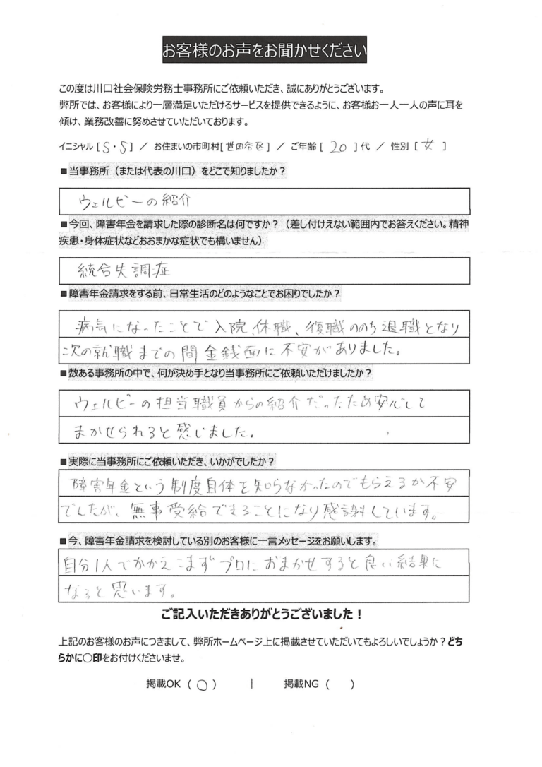 今、障害年金申請を検討している別のお客様に一言メッセージをお願いします