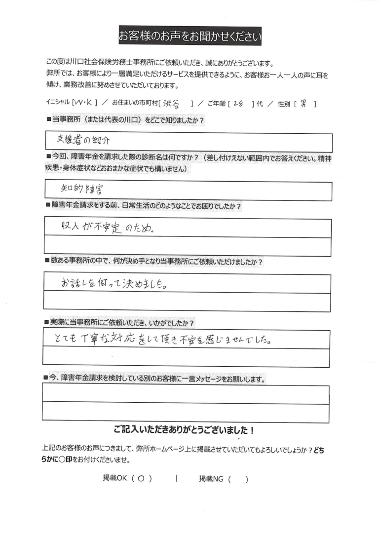 支援者のご紹介で当事務所を知っていただいたW・K様。